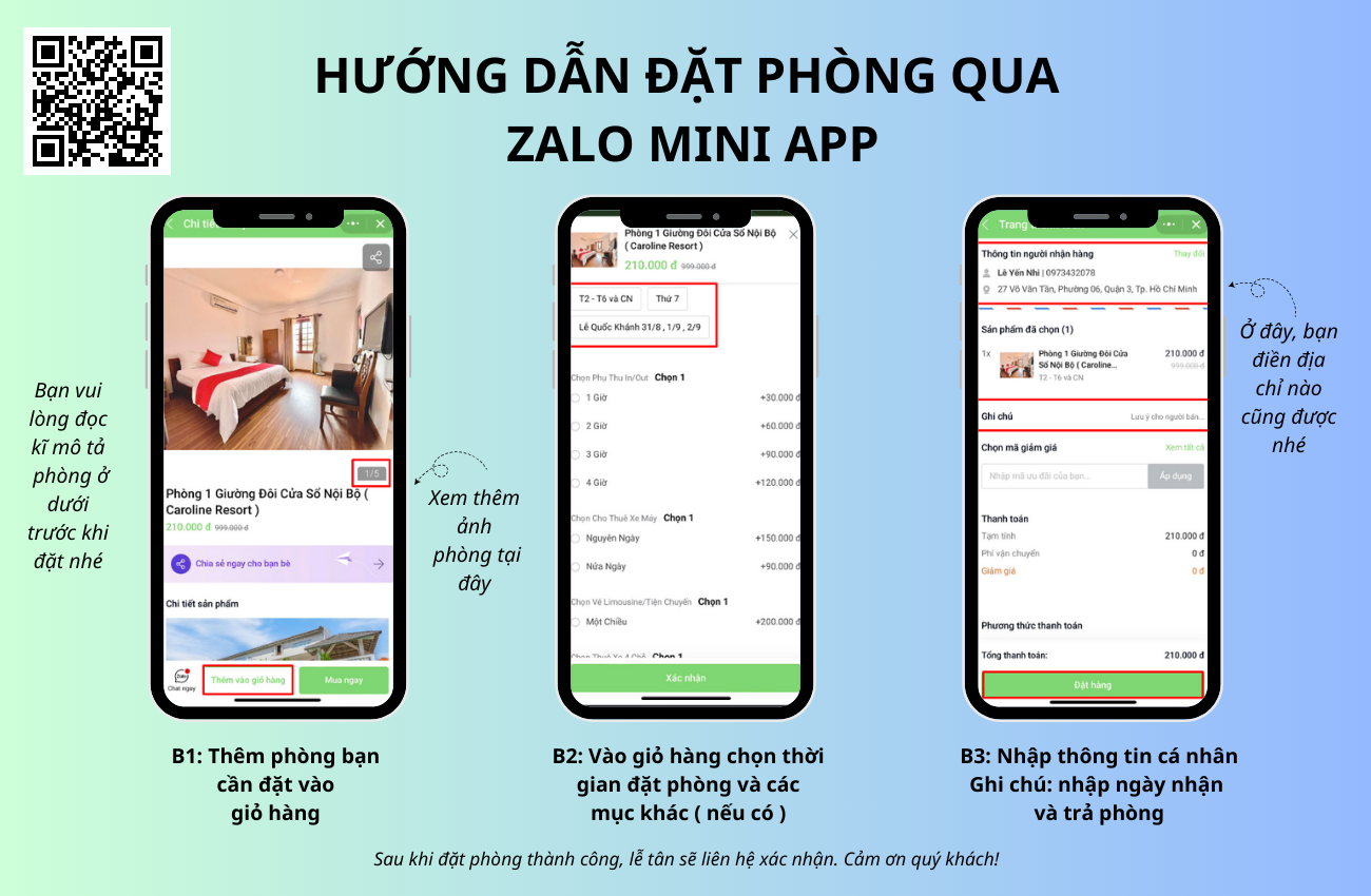 - Nội dung CK : tên đầy đủ, ngày nhận phòng ví dụ : Nguyen Van A 22.11.2023