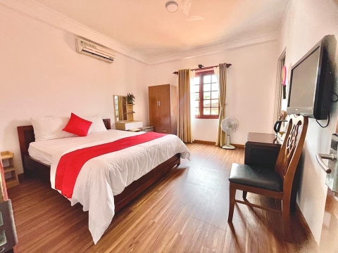Khu nghỉ dưỡng Caroline Resort Long Cung nằm ở khu Long Cung, cách bãi biển công cộng tự do khoảng 100-150m, có hồ bơi rộng lớn, nhiều điểm checkin đẹp khu sân vườn thơ mộng, có nhà hàng ngon, giá tốt với nhiều loại phòng. Phòng quí khách đang xem - đặt đây là phòng 1 giường đôi - 1 Double Queen Bed, 1 giường đôi rộng 1.6m x dài 2m, không cửa sổ - có cửa sổ mà không mở ra được do nhà bên cạnh đã xây.